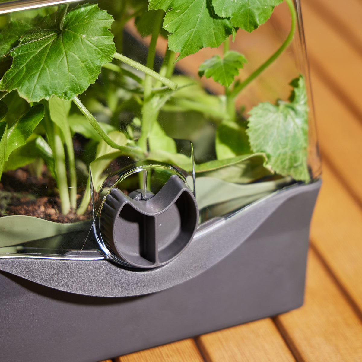 Flori is designed for both indoor and outdoor use, and is made from UV-resistant 98% recycled plastic*. Its crack-resistant clear cover locks in place to protect seeds from pests, and ribbed container floors help prevent root rot. The kit features air vents on the sides to regulate airflow and humidity, and is stackable for maximum efficiency in small spaces. It is also compatible with both sizes of Backyard Farmer Flexible Punnet Trays for further customisation.